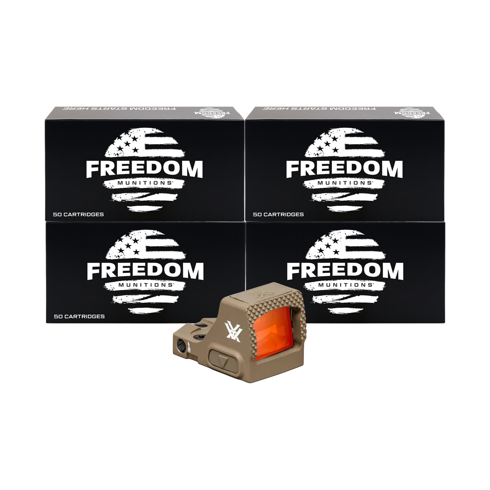 The Freedom Munitions 9mm Pro Bundle pairs premium range ammunition with a proven carry-ready optic for shooters who want performance right out of the box. This bundle combines 147gr 9mm RN ammo with the Vortex Defender-CCW 3 MOA Micro Red Dot (Tan), making it ideal for zeroing, training, and real-world application.