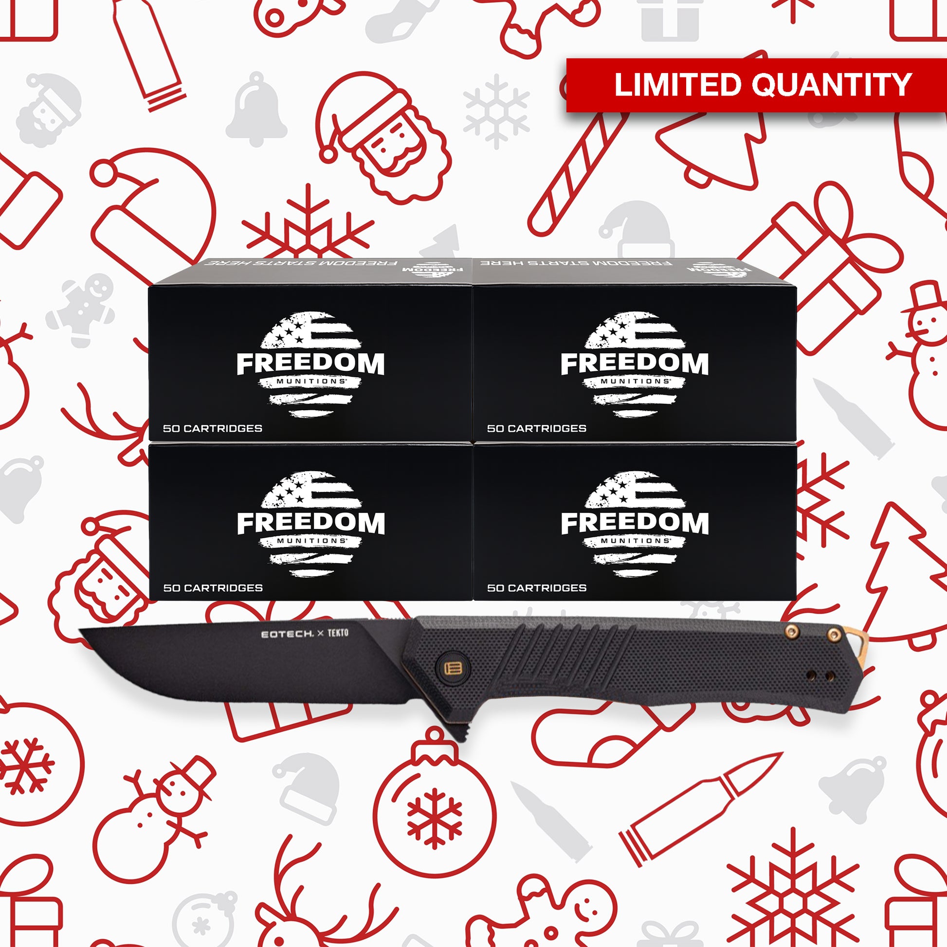 Score big with this limited‑run bundle featuring 200 rounds of 9MM 124‑grain ammunition paired with the Tekto Knives F1 Alpha EOTECH Edition — a combo that’s never been offered before and discounted to impress. The 124‑grain 9MM rounds deliver reliable, consistent performance for training or range days, while the F1 Alpha EOTECH Edition adds premium tactical design with its D2 steel blade, smooth flipper action, and signature EOTECH accents. This knife is notoriously hard to find and sells out fast, making the savings on this bundle even more noteworthy. With supply extremely limited and the discount deeper than usual, this is a Cyber‑Monday‑level deal you don’t want to miss.