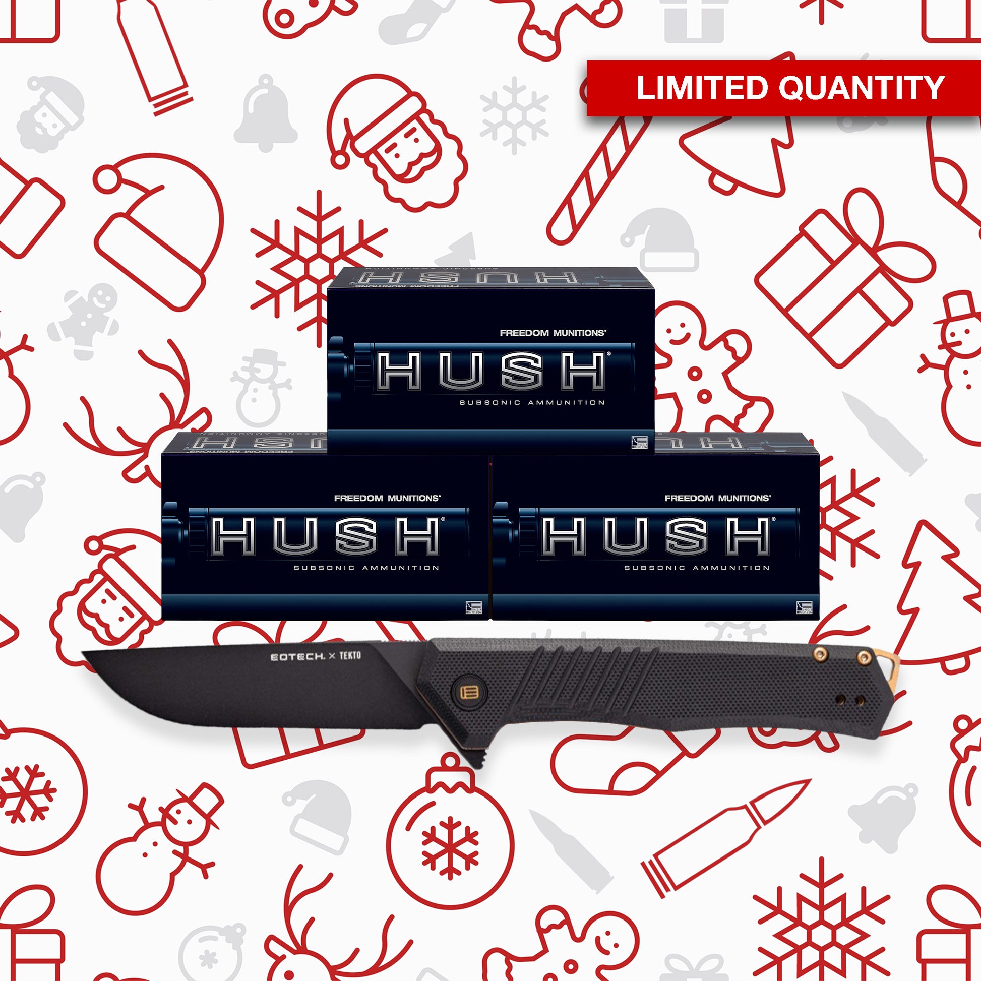 Unlock a standout deal with this exclusive bundle featuring 150 rounds of HUSH 9MM 147‑grain subsonic ammunition paired with the Tekto Knives F1 Alpha EOTECH Edition. Designed for shooters who want smoother, quieter performance, HUSH subsonic rounds offer clean, reliable cycling and reduced noise—perfect for suppressed setups or low‑recoil training sessions. Completing the bundle is the F1 Alpha EOTECH Edition, a limited‑release folding knife built with a D2 steel blade, fast-action flipper, and bold EOTECH‑branded detailing. This knife is one of the hardest Tekto models to get your hands on, and combining it with premium subsonic ammo at a steep discount makes this offer especially rare. Inventory is tight and the savings are substantial—once these bundles are gone, they’re gone.
