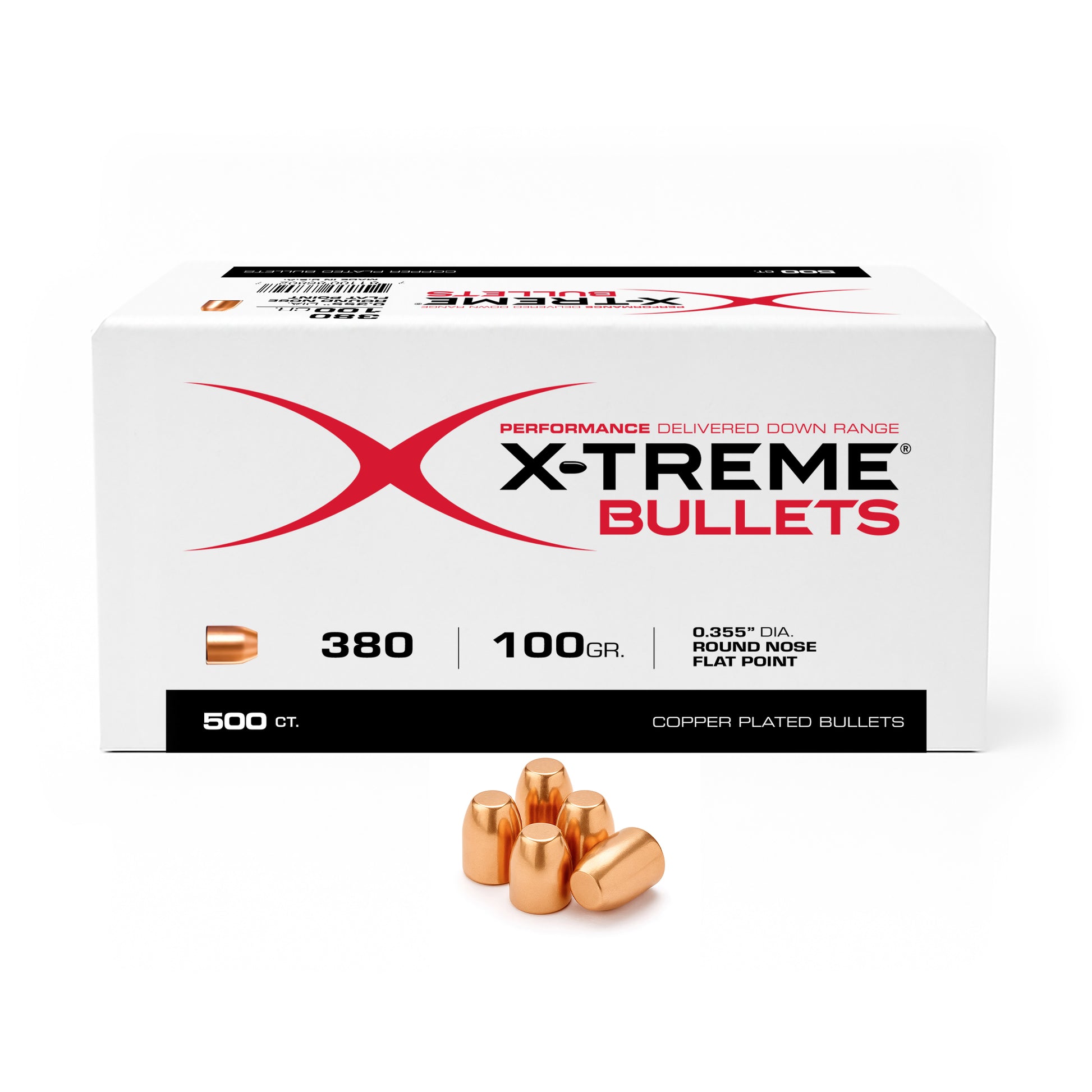 X-Treme's 380 100 grain RNFP projectiles deliver smooth feeding with a flat striking surface for better energy transfer and clean holes on targets. Designed for compact pistols, they provide reliable accuracy and reduced fouling, making them a great choice for economical defensive practice loads.